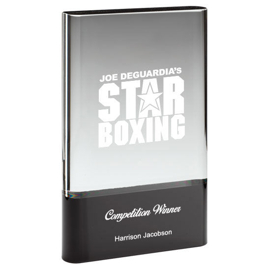 Clear and black glass Boxing trophy approximately 30mm thick available in 3 Sizes.