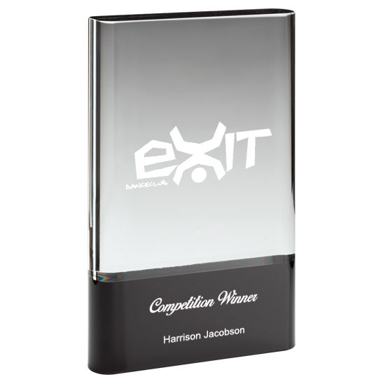 Clear and black glass Dance trophy approximately 30mm thick available in 3 Sizes.