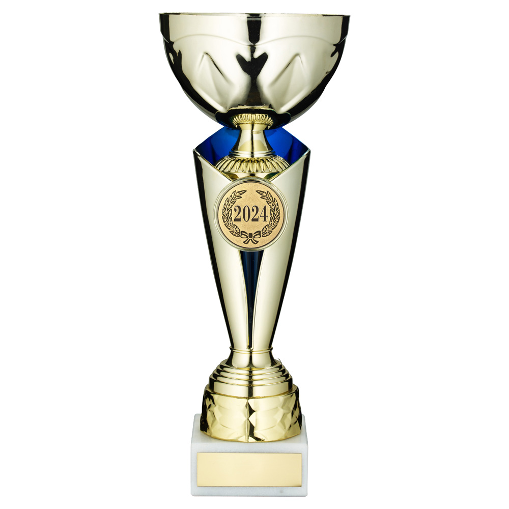 Gold/Blue Tall Trophy Cup 3 sizes available Add your own bespoke centres & text engraving