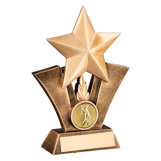Gold Finish Star Golf Trophy Available in 3 sizes , featuring a 1 centre holder that can be personalised. Engraving is available on this award fromAll Sports Awards, a UK leading supplier of trophies and awards