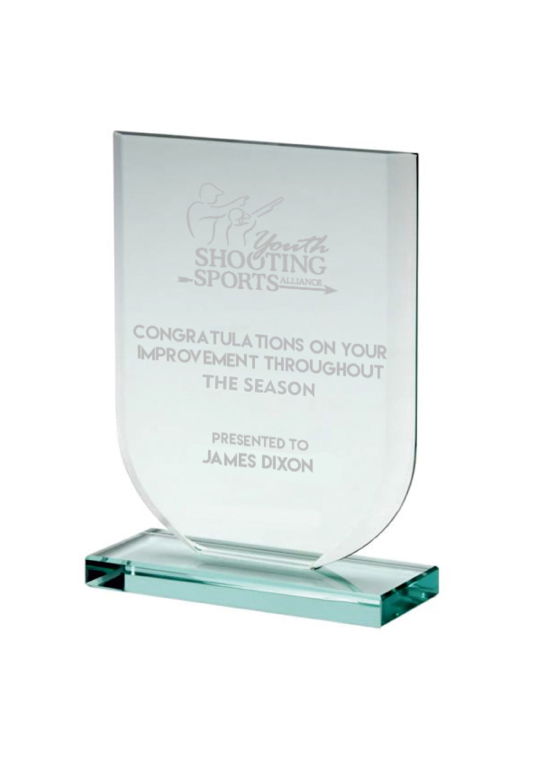 Jade glass shooting trophy available in 3 sizes. This award comes supplied with black presentation box.
